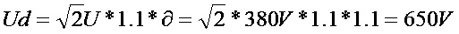 考慮到電網(wǎng)電壓的波動-10%~+10%,所以二極管最小參數(shù)應?。?/p>