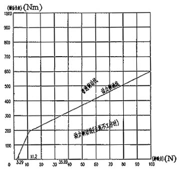 通過曲線圖和計(jì)算數(shù)據(jù)我們可以看出:在32.9N≤Bf≤358.9N情況下的普通制動的制動力矩明顯小于動力制動力矩。由此可見操作者可在此范圍內(nèi)用較小的踏板力得到較大的制動力矩。考慮到克服制動踏板空行程等一些客觀因素,叉車實(shí)際工作狀態(tài)中需要的制動腳踏力通常在50~300N范圍內(nèi)。在實(shí)驗(yàn)中我們測量得到的使車輪完全抱死的情況下,普通制動的腳踏力為250N,動力制動為104N。